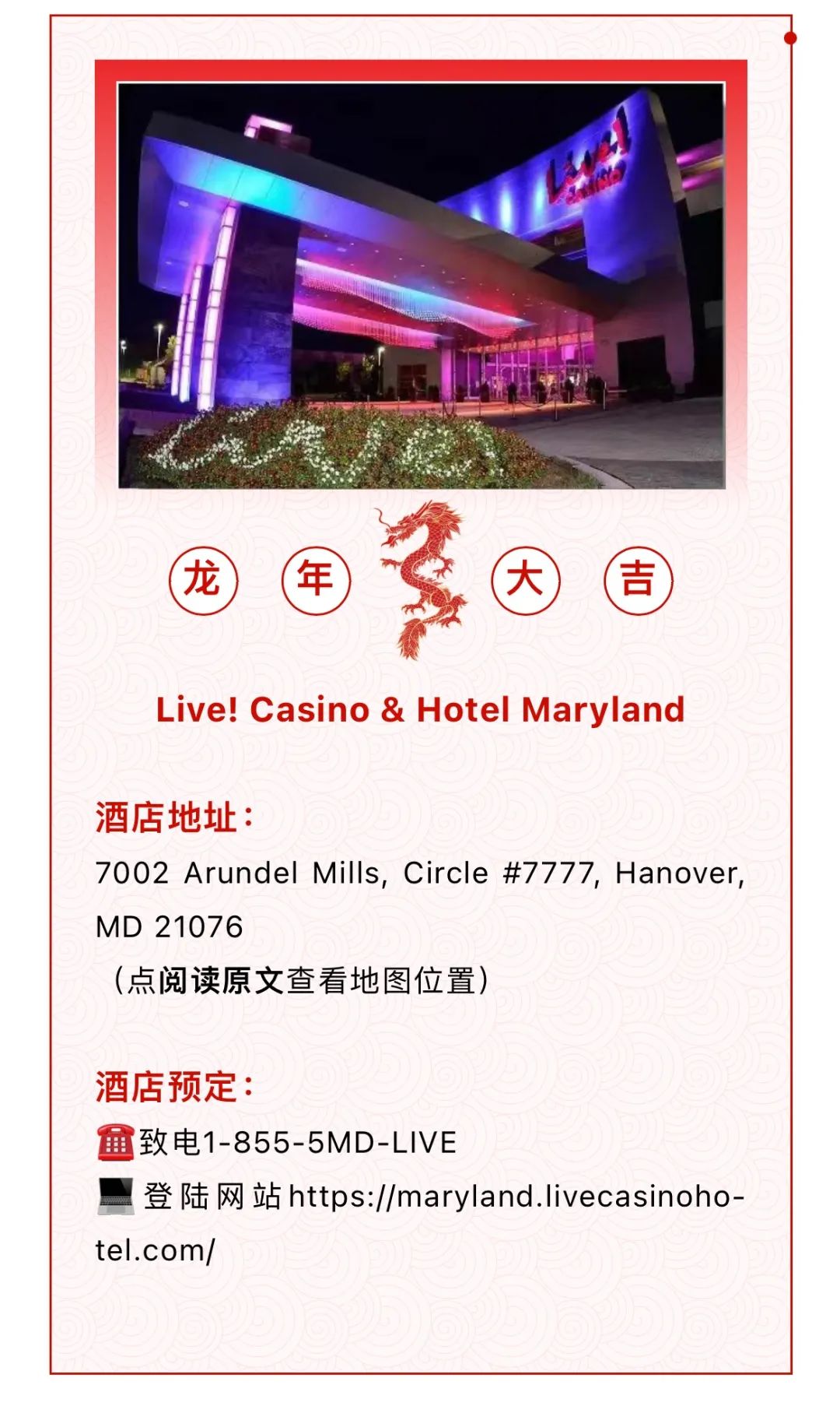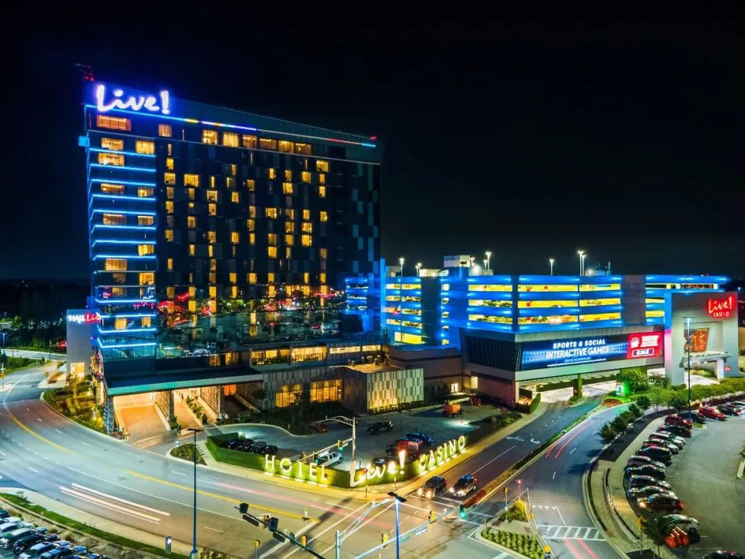 Live! Casino & Hotel Maryland是马里兰州的AAA四钻级旅游娱乐目的地,地处巴尔的摩和华盛顿特区中间的Arundel Mills,位置四通八达,毗邻BWI Thurgood Marshall机场、MARC和Amtrak车站、以及 Arundel Mills Mall购物中心,每年吸引超过1000万名游客,提供世界级的娱乐、住宿、玩乐、餐饮体验。