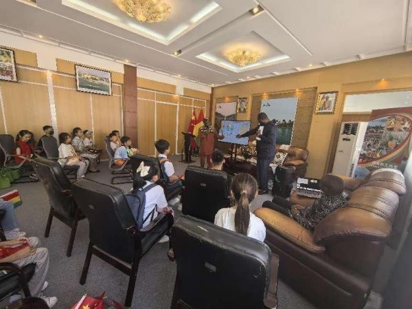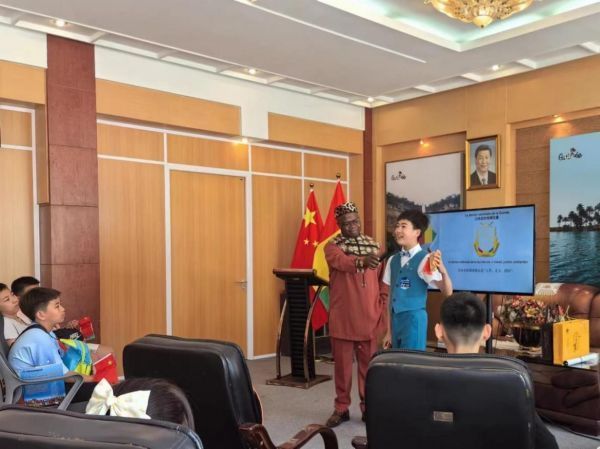 文化参赞在给小外交官们讲几内亚的国情、文化等