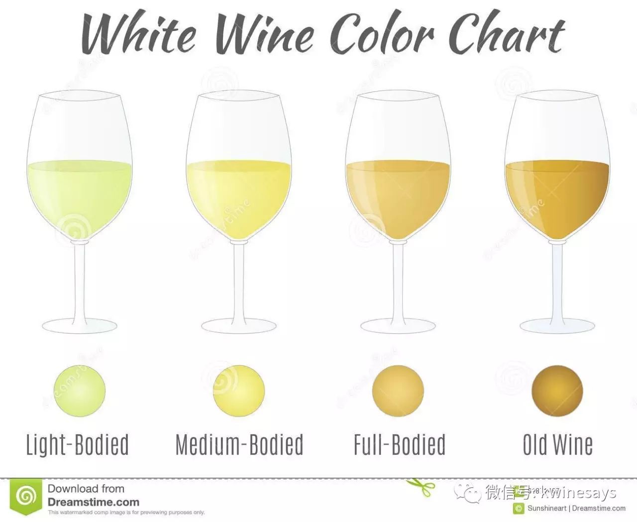 而色调是颜色的差别,白葡萄酒可以分成:黄绿,稻草黄,金黄,琥珀黄和橘黄等。