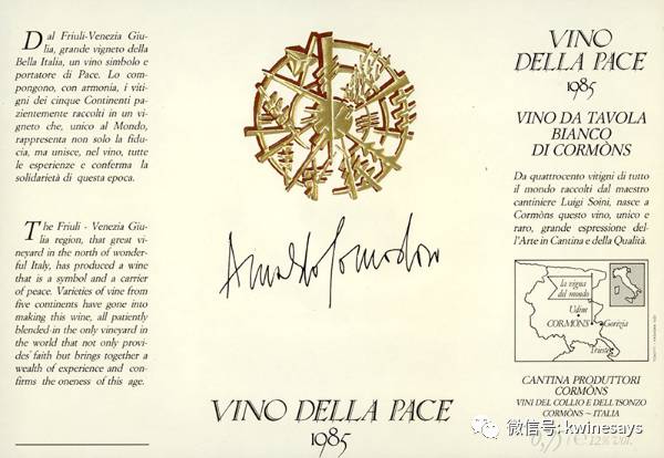 好奇心驱使,让我上网搜索是否有人这么做。结果真有一个酒窖每年收集世界各地的葡萄,酿一种名叫“世界和平”的酒,并请各种艺术家设计酒标,从1985年开始,从未间断。