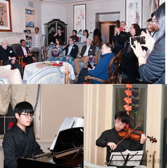 与上海美食相得益彰的还有精彩的文艺表演。两位华人少年王奕杰和裴浩宸演出钢琴和小提琴二重奏以及钢琴的四手联弹,在华府杉园飘荡起大家熟悉的《梁祝》,为蔓延在空气中的美食香味增加了一道听觉大餐。