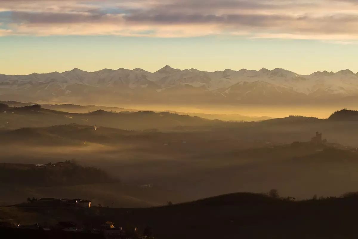 每当丰收季的清晨,山间总是会雾气缭绕,因此在Langhe特产的一种葡萄就被命名为“雾珠” (nebbiolo , 百度中文名“内比奥罗”)。Barolo就是用100%的雾珠葡萄酿造而成。