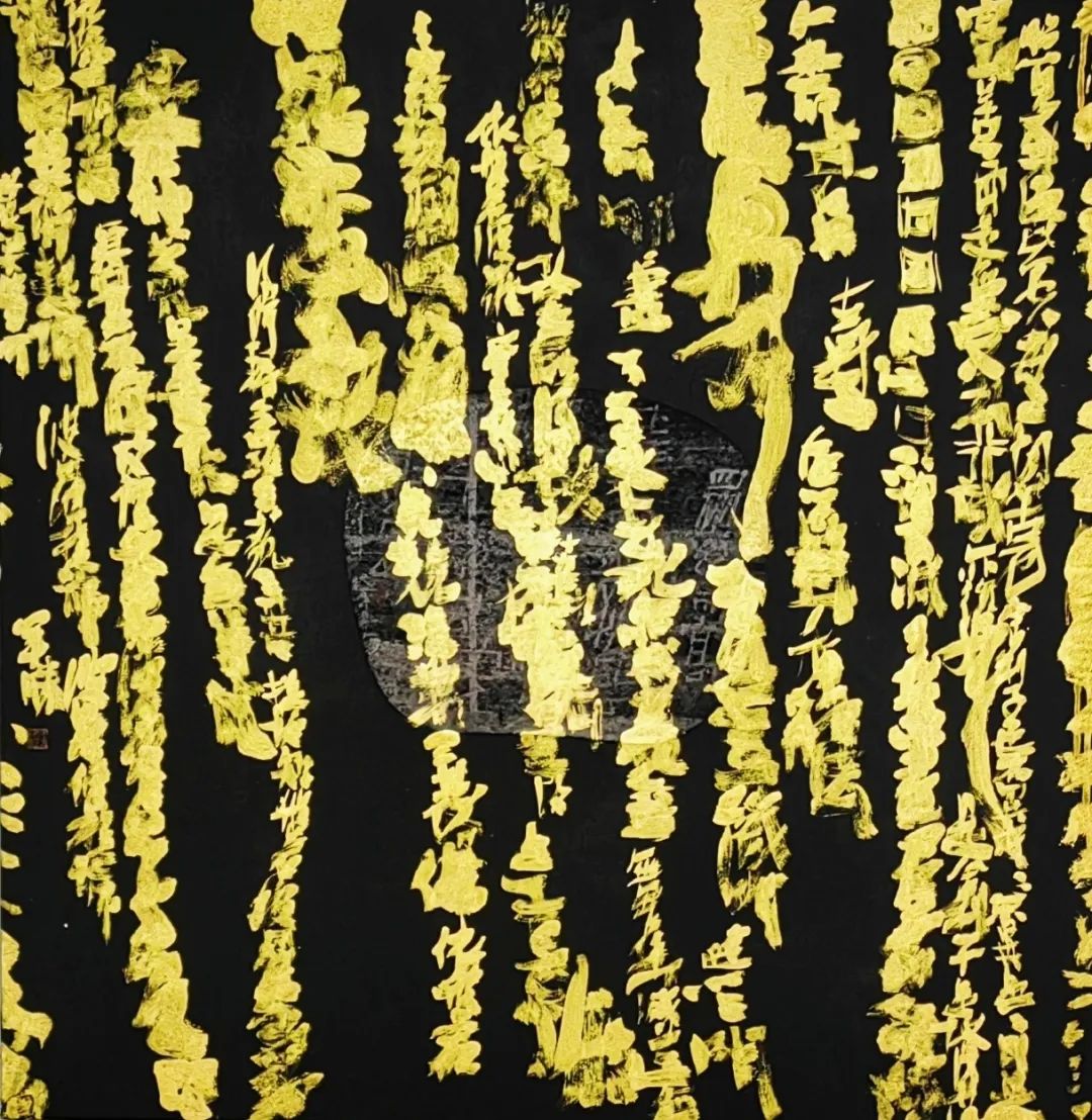 经文书写意象Ⅲ,宣纸、自做墨、综合材料