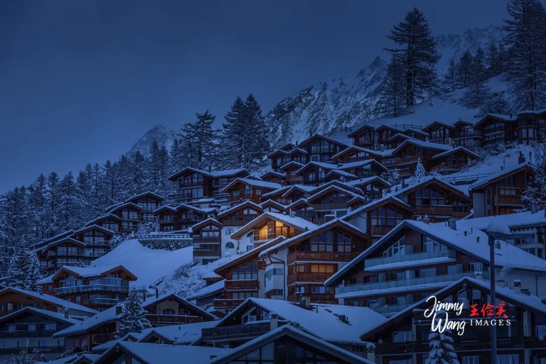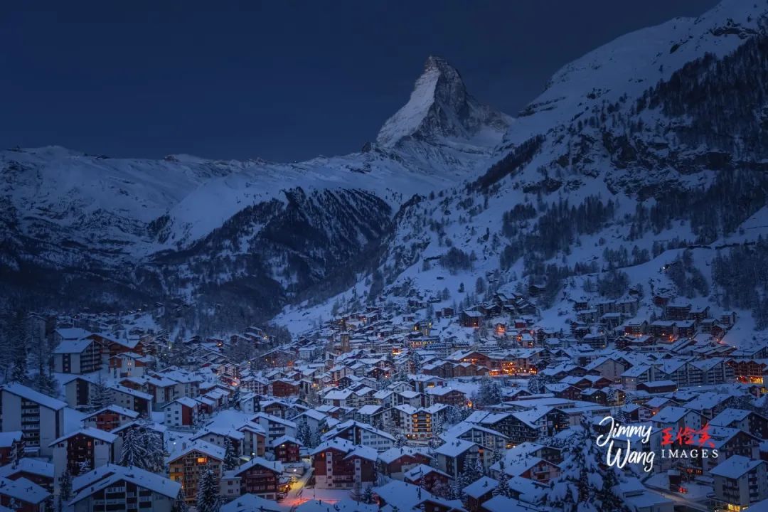 图1-2,瑞士马特洪峰山麓灯光璀璨,不远处村舍鳞次栉比;图3,纽约夜色迷人;图4,意大利云遮雾罩。