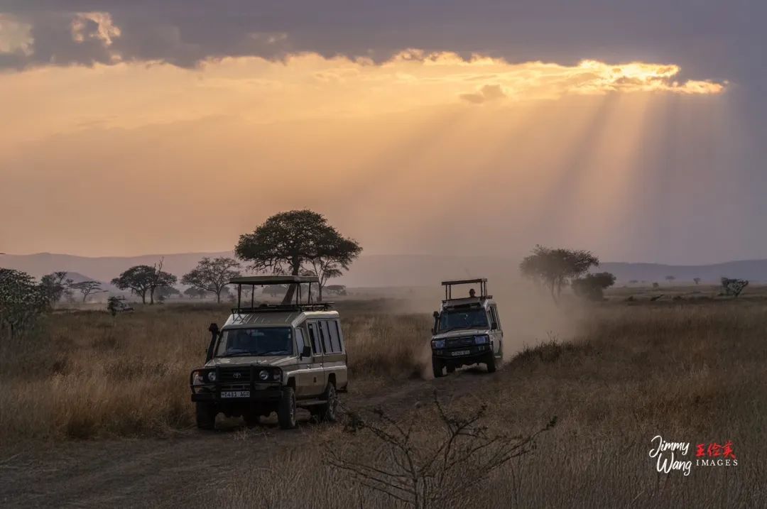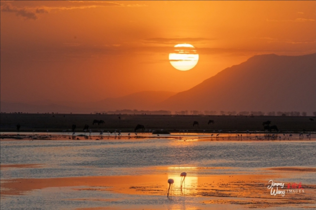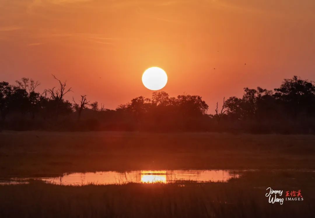 夕阳缓缓下沉,大地一片静寂。非洲是野生动物的天堂,也是人类心灵的净土。(The sun sets slowly, and the land is silent. Africa is a paradise for wildlife and a haven for the human soul.)