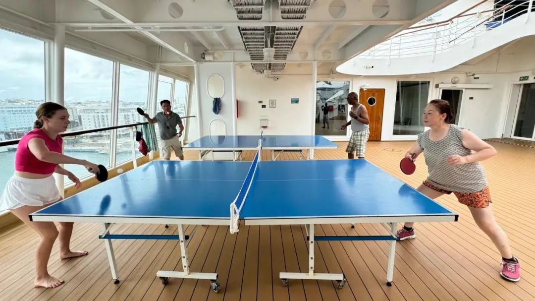 我们在高层甲板与其他游客一起打乒乓