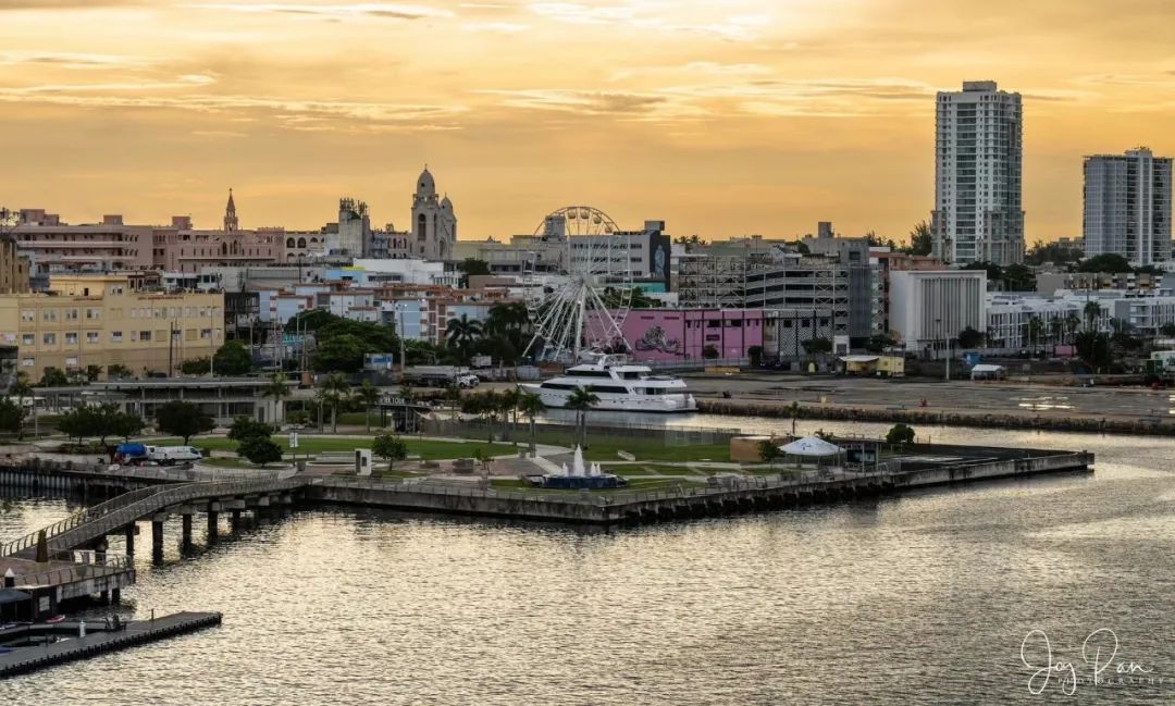 日出时分游轮靠岸,游轮停歇在波多黎各首府San Juan圣胡安港口。