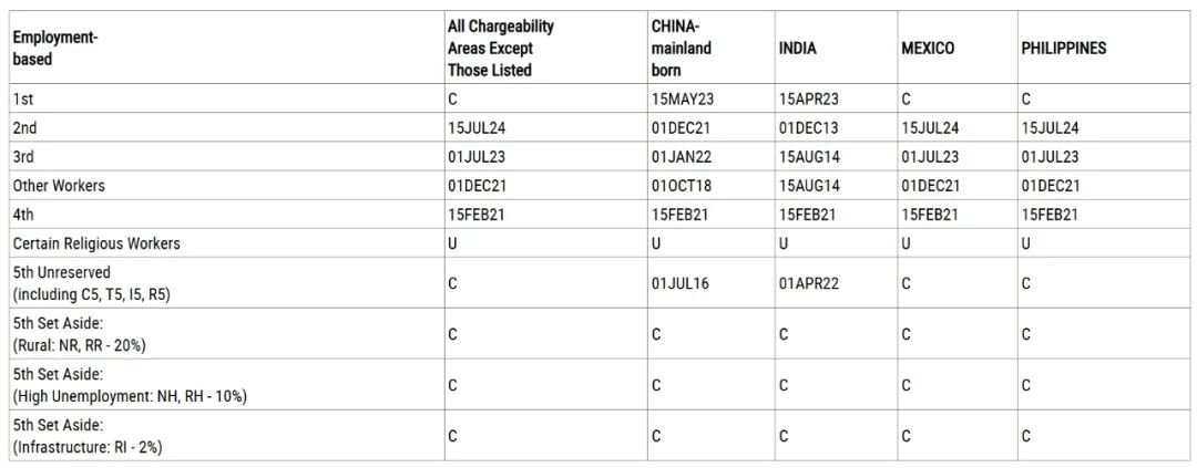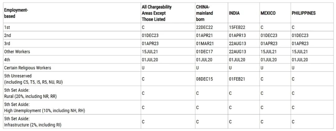 在中国大陆出生职业移民审批排期方面,EB-1类前进37天,EB-2类前进107天,EB-3类前进90天,非技术劳工类前进214天,其余各类均原地踏步。
