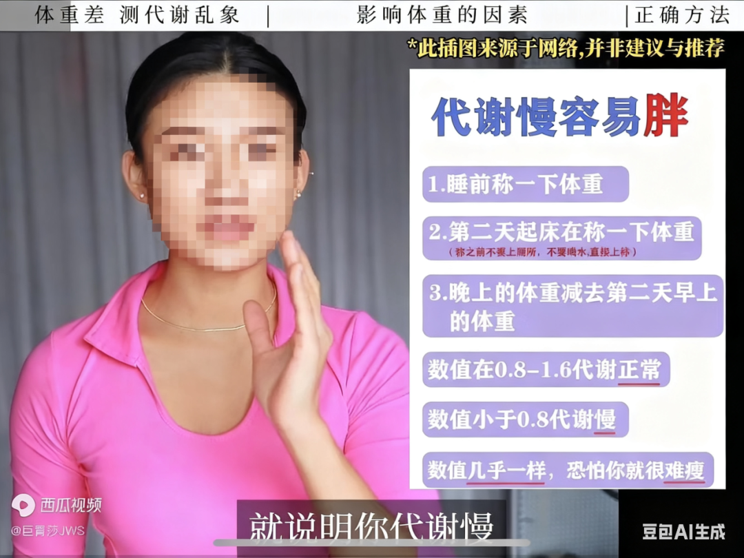 (一个驳斥夜间减重“0.8-1.6”算是代谢正常的视频,截图经豆包马赛克处理)
