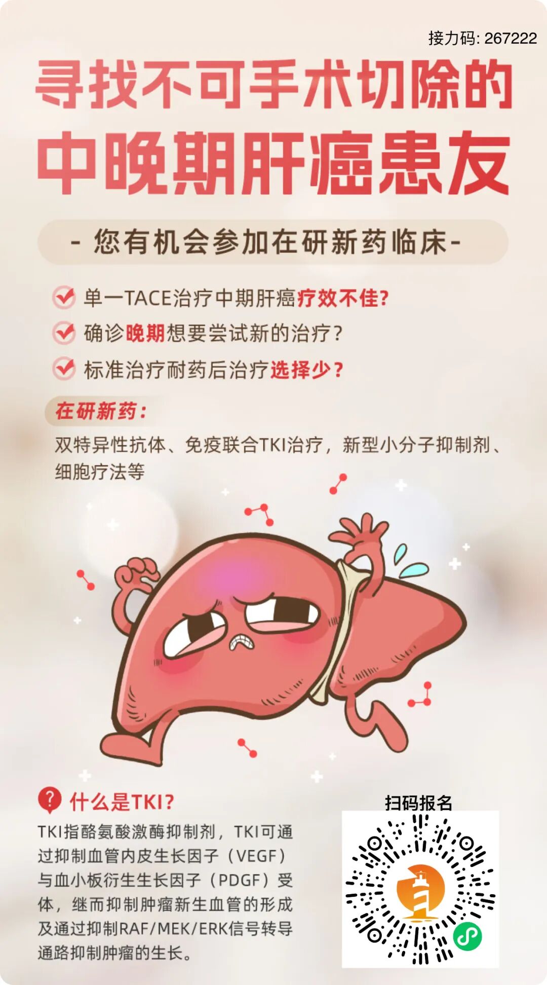 关于肝癌,目前有两项进行中的临床试验,正在招募患者。可以通过上面的二维码咨询。