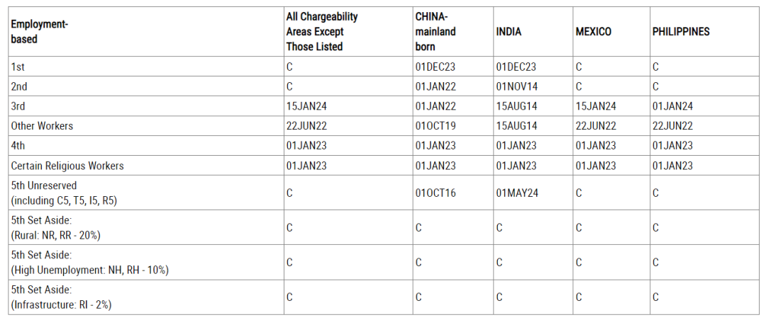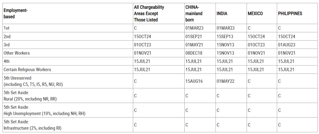 在中国大陆出生职业移民申请排期方面,EB-1类(杰出人才)前进123天,EB-4类(特殊人员)前进658天,EB-5类(投资移民)前进41天,其余类别均原地踏步。