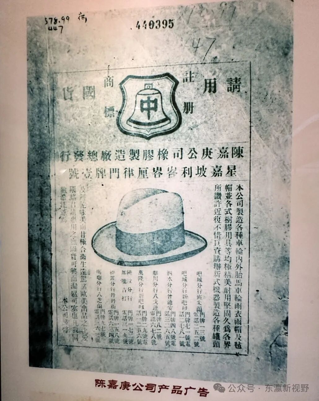 陈嘉庚在实现最初的资金积累后,曾涉足食品、运输、医疗、橡胶等产业,财富日益增长,特别是橡胶业,曾被称为“橡胶大王”。927年,陈嘉庚公司研制出当时中国未生产的汽车内外胎,其设计的一个显著特征是轮胎花纹使用“中”字串联起来,围绕轮胎一圈。这既是他的产品设计,也被他注册成为了商标。这既体现出陈嘉庚作为成功商人懂得营销的一面,也体现了他的爱国情怀,因为他真的希望中国人生产的轮胎,走遍世界。