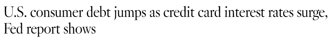 信用卡债务也增加了——以20年来最高的速度增长——未偿债务比去年同期增长了15%。