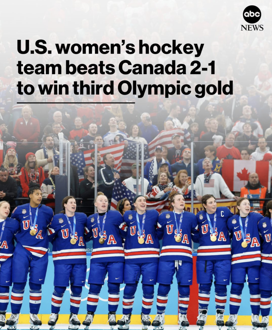 特大喜讯!美国赢得46年来第一次男子冰球奥运金牌——而且女队今年也夺金了!