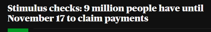 国税局说符合条件的人必须在11月17日(周四)当天结束前提交一份纳税表格来申报这笔钱。