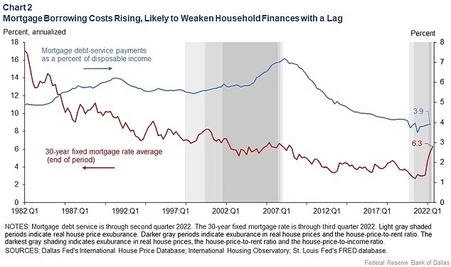 10月美国二手房销量连续第九个月下降,创下10多年来最慢的疫情前销售速度。全国地产经纪人协会上周五表示,上月现房销售比9月下降了5.9%,季节性调整后年率为443万套。今年的月度销量下降的时长,是1999年以来录得最长的一次。销量比去年10月缩减了28.4%。如果不考虑疫情之初的销量急剧放缓,现在的销售速度是2011年12月以来最慢的年度速度,当时楼市仍陷于2000年代的深度低迷。尽管速度放缓,但上月房价在继续攀升,尽管速度比今年早些时候要慢一些。10月份全国房价中位数比去年同期上涨6.6%,达到379,100美元。根据全国房地产经纪人协会的数据,第三季度全美现有独户住宅中位价上涨了8.6%,达到398,500美元。不过,鉴于第二季度房价跃升了14.2%,价格上涨速度其实在放缓。根据Pantheon Macroeconomics的数据,自1月以来,房价已经下跌近32%。NAR首席经济学家Lawrence Yun说,现在房价中位数比6月峰值下降约8%,但仍比2019年10月疫情前的价格高出40%。这样一来,可负担性无疑就下降了,毕竟大多数家庭收入可没有随之增加40%。Yun说:“购买力大大降低,使房价增长放缓,这一趋势将持续到抵押贷款利率停止上升为止…...房价的趋势也可能因地区而异。西海岸更贵的楼市在快速升值后可能会经历一些回撤,这是多年来新建房屋有限的结果。中西部地区房价相对可承受,随收入和租金增加,可能会继续上浮”。美国长期抵押贷款平均利率比一年前增加了一倍多,导致可负担性降低,楼市一直在放缓。根据抵押贷款买方Freddie Mac的数据,本周30年期住房贷款平均利率为6.61%。一年前平均利率为3.1%。上月末,平均利率自2002年以来首次超过7%。这就意味着月供要增加数百美元,降低了购房者的购买力,同时也锁定了过去几年超低利率业主的置换意愿,反过来又会限制可供出售房屋的数量。△30年期固定抵押贷款的平均合同利率最近飙升至7%以上,是20年来首次,不过上周降至6.9%。而这一切短时间无解,央行希望通过提高借贷成本来抑制40年来的最高通胀率,因此一直表态打算继续提高短期利率,应该会抑制企业和消费者的需求,也降低当前房价“繁荣”持续的风险。如果价格大幅调整导致经济萎缩的可能性成为现实,将使美联储对抗通货膨胀的努力进一步复杂化。△抵押贷款利率的上升最终将开始提升债务偿还占可支配收入的比例。美联储希望通过提高借贷成本来减缓通胀。两周前,美联储将短期贷款利率又提高了0.75个百分点,是通常幅度的三倍,而这已经是今年第四次了。关键利率现在处于3.75%至4%的范围内。虽然抵押贷款利率不一定反映美联储的加息,但往往跟踪10年期国债收益率。收益率受各种因素影响,包括投资者对未来通胀的预期和全球对美国国债的需求。△美联储发布了一系列的巨额利率上调,间接推动了抵押贷款利率上升。Pantheon首席经济学家Ian Shepherdson在一份报告中说:“今年销量暴跌紧跟抵押贷款需求的崩溃,可负担能力已经恶化,预计住宅地产销售将进一步下滑”。由于市场房源数量按历史标准仍相对稀少,卖家会继续收到多份报价,尤其是那些最实惠的房产。全国地产经纪人协会说,平均而言,上月挂牌后仅21天就售出,比9月份的19天有所增加。疫情前,房屋通常挂牌超30天售出。房价上涨,加之抵押贷款利率的提高,更多买家会被挤出市场,换言之——上车更难了。NAR说,现在购买典型房屋所需收入中位数为88,300美元,比2019年疫情前需求多出约4万美元。据估算,价值约34万美元的典型上车盘房产,如果首付10%,将面临1808美元的月供,比一年前多出约600美元。综上,明年房屋销售将下滑7%,但预计房屋价格中位数将上升1%,因为库存仍然紧张,买家竞争依旧激烈,市面存量房连续第三个月下降。全国地产经纪人协会说,截至10月底,市场上约有122万套房屋,比9月份下降了0.8%。按照目前的月销速度,也就是差不多3.3个月的供应量。买家和卖家更平衡的市场,应该有差不多5~6个月的供应。LPL金融公司首席经济学家Jeffrey Roach在一封电子邮件中说:“房屋需求的其他领先指标表明,楼市可能还有更多下行空间,低供应量、人口格局和持续地域洗牌意味着楼市不太可能重复大金融危机的经历。随住房市场进一步冷却,中位数价格应该下降,帮助负担能力恢复平衡。”根据Zillow的数据,10月,购买典型房屋的月供为1910美元,比一年前增长了77%,比2019年增长了107%,或近1000美元。根据达拉斯联邦储备银行的研究,由于2022年抵押贷款利率急剧上升,美国房价可能暴跌高达20%,大大增加了房屋所有权成本,提高了房价大幅调整的几率。达拉斯联储经济学家Enrique Martinez-García在周二的一份报告中指出,可以肯定的是,“悲观的情况下”,全美房屋可能减少多达五分之一的价值。其他经济学家也发出类似的担忧,Pantheon Macroeconomics首席经济学家Ian Shepherdson今年早些时候预测房价将出现类似下滑。△达拉斯联储的高级研究经济学家Enrique Martínez-García研究了住房大幅修正的风险。疫情成了楼市中一个不寻常的灵药,曾经创纪录的低抵押贷款利率和居家办公催生了上一波的楼市热。市场高峰期,一些买家甚至不再过多挑剔检查,或者干脆在报价上高出数万美元以求赢得竞标,这种“害怕错过”的心态助长了“泡沫”。扣除通胀因素后,2013年~2022年期间,房屋价格总共上涨约61%,超过1998年~2007年的前一次房屋泡沫。这种史无前例