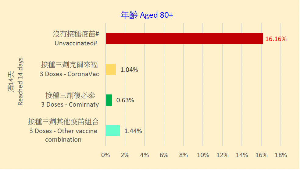 首先需要指出的是,目前奥密克戎导致“肺炎”的能力大大下降了,主要导致的是上呼吸道感染。大家知道,老年人感染新冠后风险比较大。香港真实世界数据表明,在感染了奥密克戎变异株之后,对于80岁以上的老人,没有接种疫苗者病死率为16.16%,接种三剂科兴灭活疫苗可降至1.04%,接种三剂复必泰可降至0.63%。