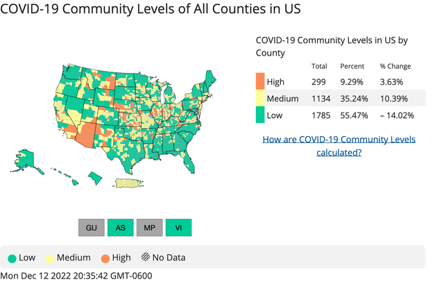 据NPR新闻12月11日报道 随着三种高度传染性的呼吸道病毒在假期肆虐,公共卫生官员正在重新讨论室内口罩的话题。 过去几周,新冠病毒、流感和呼吸道合胞病毒(RSV)病例激增,数百万美国人患病,急诊室人满为患,甚至导致感冒药短缺。美国疾病控制与预防中心主任罗谢尔·瓦伦斯基(Rochelle Walensky)上周指出,同时出现的病毒组合已经给全美的医疗系统带来了压力。 瓦伦斯基告诉NPR新闻,CDC追踪新冠社区水平的地图最近显示了更多的橙色,这种颜色表示“高”感染区域。 她说:“为了保护这些高感染区域的弱势群体,我们已经并将继续建议这些社区戴口罩。” 美国疾病控制与预防中心最新的新冠社区地图显示,美国超过9%的县被认为感染风险很高。上周五发布的地图上,几乎每个州都包括至少一个新冠社区水平较高或中等的县。夏威夷、缅因州、新罕布什尔州和华盛顿特区是美国仅有的所有县的社区水平都很低的司法管辖区。 可以在疾控中心的页面上可以查看所在县情况,了解当地的风险水平,以及是否建议在你居住的地方戴口罩。 网址为:https://covid.cdc.gov/covid-data-tracker/#county-view?list_select_state=all_states&list_select_county=all_counties&data-type=CommunityLevels。在华盛顿州,12名县卫生官员和25名医院高管周五发布了新的指导意见,要求居民在室内戴口罩。 俄勒冈州卫生局同样建议居民在拥挤的室内区域戴口罩,特别是帮助保护儿童和老年人。 俄勒冈州流行病学家迪恩·西德林格博士在周四的新闻发布会上说:“流感、RSV和新冠病例激增,使医院超过了目前的ICU床位容量,这在俄勒冈州新冠大流行最黑暗的日子里从未发生过。” 周四当地公共卫生主任芭芭拉·费雷尔博士敦促居民在室内戴口罩,并补充说如果新冠病例和住院人数继续上升,可能会强制戴口罩。 在纽约市卫生专员阿什温·瓦桑博士周五建议纽约人在商店、公共交通工具、学校、儿童护理设施和其他公共共享空间内佩戴口罩,特别是在拥挤的时候。