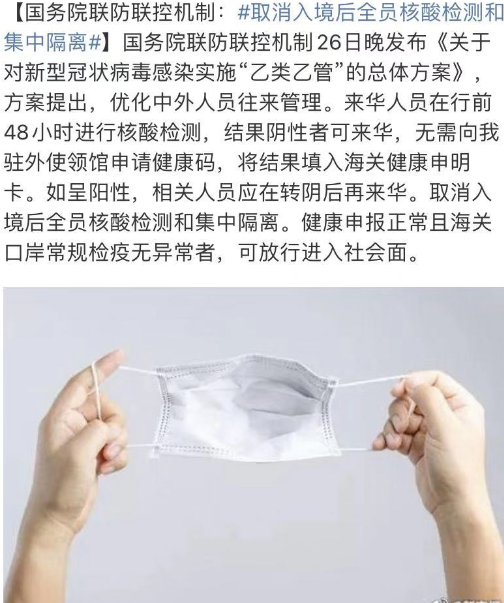 重磅!中国入境取消隔离,取消健康码,取消五个一航班限制...