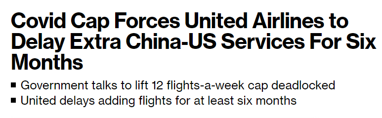 有媒体从美联航总部得到回复称:“美国和中国大陆之间的航班继续受到美国交通部命令的管辖,该命令限制中美之间的航班量。”
