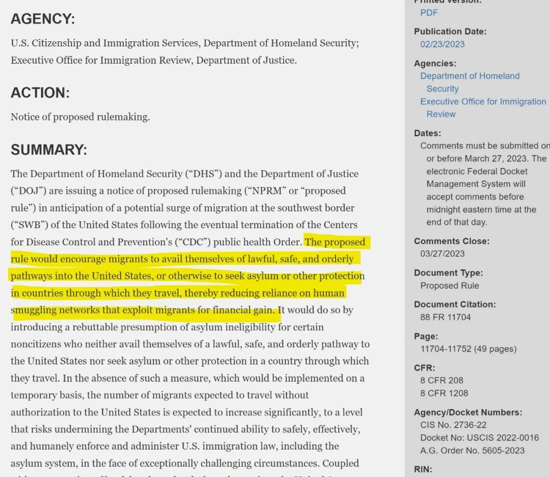 近日,忍无可忍的拜登政府表示预计南部边境的移民可能会持续激增,因此于2023年2月21日宣布颁布新政策,将严厉打击非法移民!