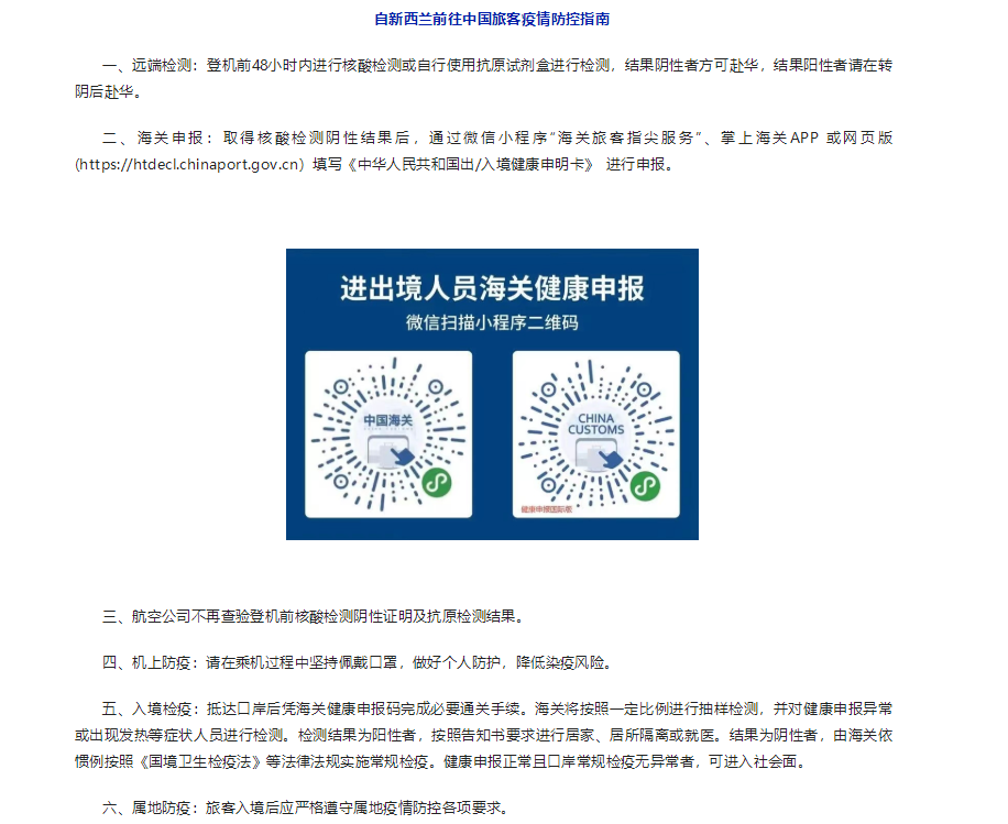 对于从新西兰,马来西亚、南非等国家回中国的民众来说,回国政策又迈进了一步。