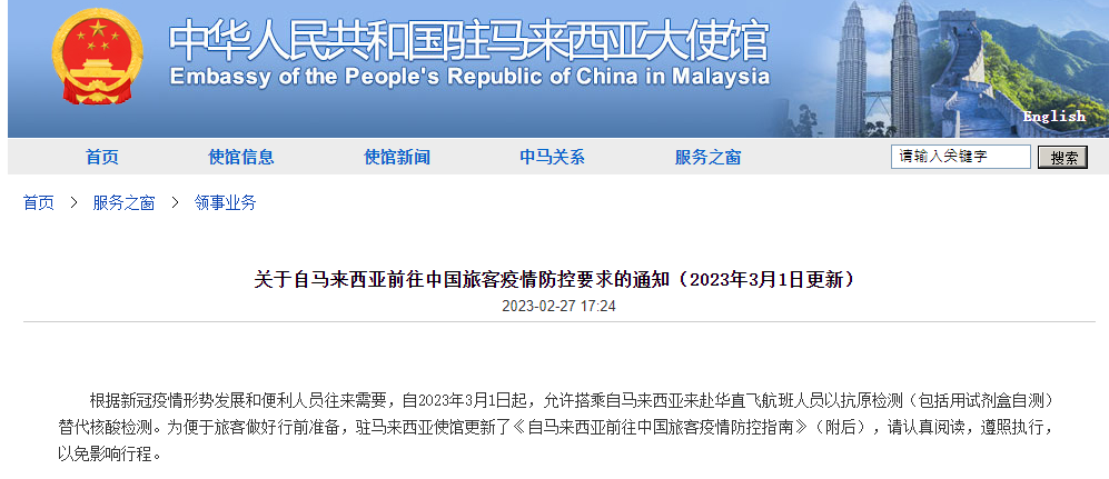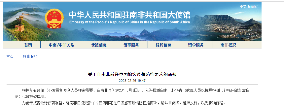 随后,驻马来西亚、南非等使馆也跟进发布相关通知了。