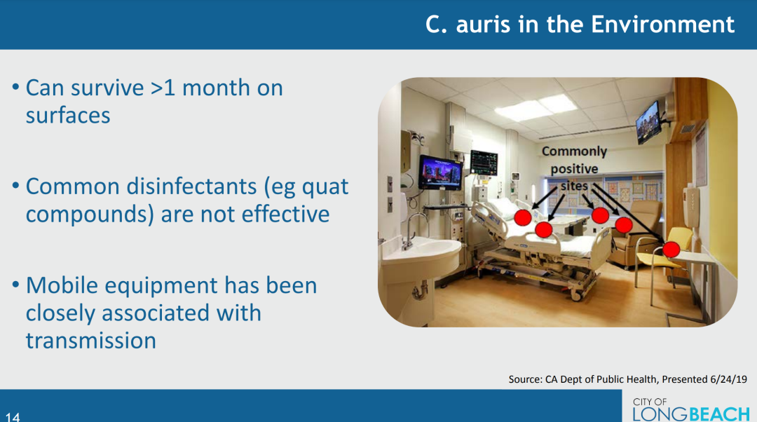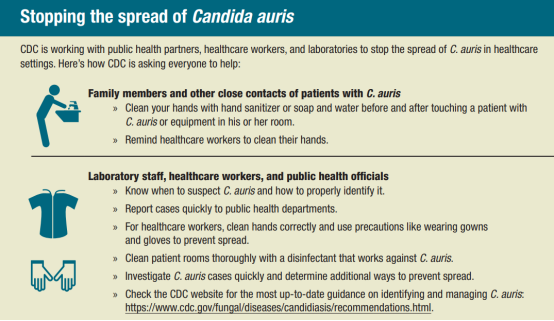 图片来源Longbeach.gov,版权属于原作者加强个人卫生:保持手部卫生,勤洗手,并在接触可能污染的表面后使用洗手液进行清洁。避免接触已感染者:尽量避免接触已感染者的皮肤、呼吸道、泌尿生殖道等部位,并避免共用物品。提高免疫力:通过保持良好的生活习惯、适当的运动和均衡的饮食等方式提高免疫力,从而预防感染。由于耳念珠菌(C. Auris)极具耐药性,对常用的抗真菌药物没有反应,难以准确检测等多种特性,使得治疗更加复杂困难,因此及早发现和诊断十分重要。如果您有疑似耳念珠菌感染的症状,请及时就医,并告知医生您的病史和接触史,以便及早确定治疗方案。美国疾病控制预防中心(CDC)指出,身体健康的公众对“超级真菌”的传播不必过分担心,医疗机构需警惕耳念珠菌(C. Auris)的传播。https://www.westernmassnews.com/2023/03/22/superbug-candida-auris-found-massachusetts-more-than-half-us-states/https://www.cdc.gov/media/releases/2023/p0320-cauris.htmlhttps://www.usatoday.com/story/news/health/2023/03/21/fungus-candida-auris-infections-spreading-cdc-warning/11513263002/https://www.cdc.gov/fungal/candida-auris/candida-auris-qanda.html