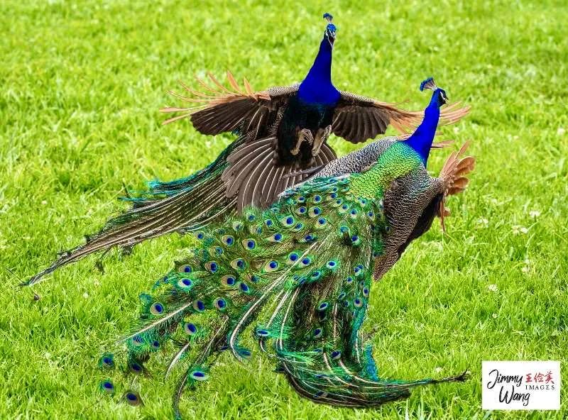孔雀打斗。终于摄到孔雀精彩打斗精彩场面,一招一式,颇像书法大师笔走游蛇、龙飞凤舞。一说孔雀就是神鸟凤凰的原型。