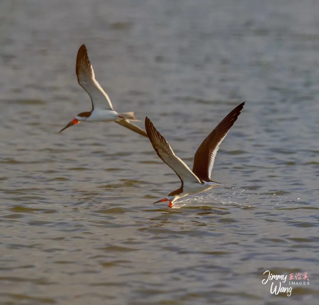 “山气日夕佳,飞鸟相与还”。前几天,终于拍到比翼齐飞的两只剪嘴鸥,照片直接植出,稍作裁切,节省后期制作时间,与大家分享“小确幸”。