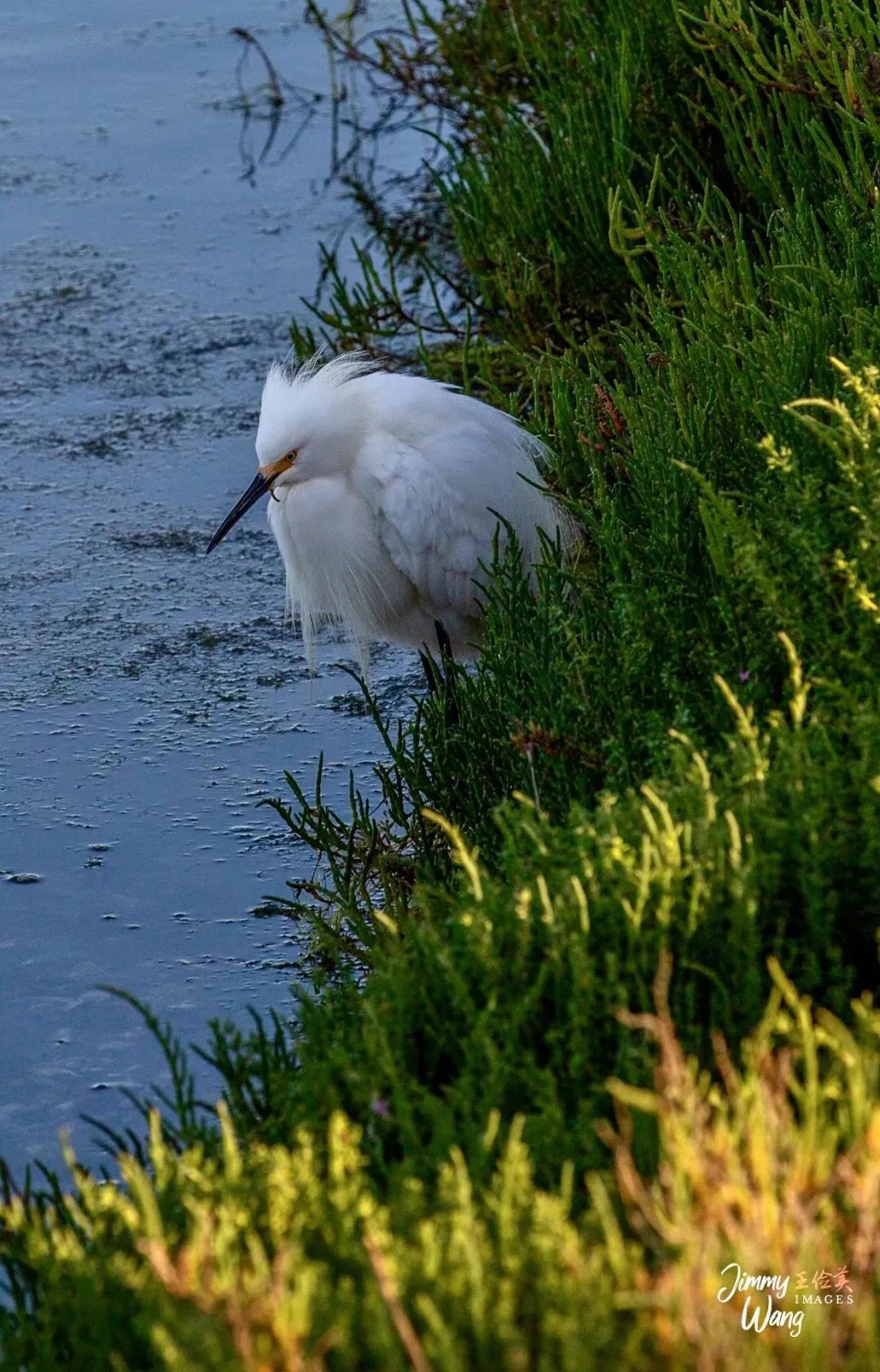 期间偶有转换姿势,或者挨个数蛋,让人发现,身上的白羽毛都变绿了,久久浸泡后,融入湖上植物枝叶的颜色。