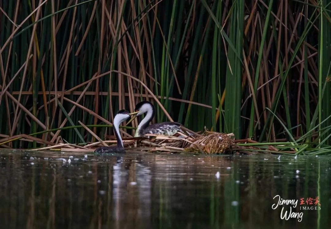 公鸊鷉体恤雌鸊鷉“坐月子”难熬,常常过来探望、抚慰、投食,呵护周全,恰如人类的“暖男老公”……