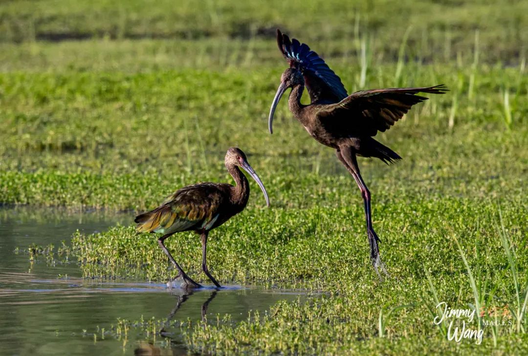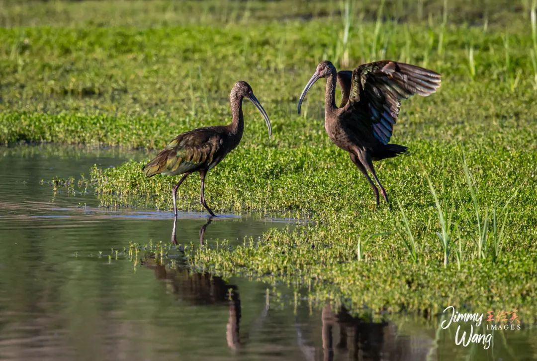 有鸟类专家说,彩鹮黑得五彩斑斓!彩鹮是鸟纲、鹮科、彩鹮属的鸟类,本帖呈现的是青铜栗色带着金属闪光的鹮,绿色及紫色的体羽令人艳羡,在夕阳余晖的照耀下又变成棕红,并没有听到叫唤声,江湖上流传的是那种带点鼻音的咕哝声,入巢时会发出咩咩及咕咕声响。