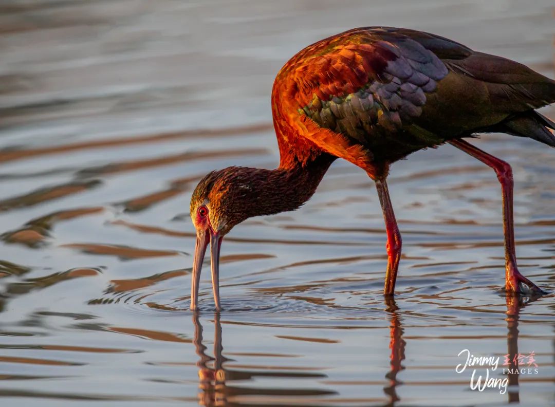 彩鹮喜欢沉浸式觅食。吃货彩鹮为了探觅水底食物,甘愿将整个头部完全浸入水中。让我做一个安静的“干饭人”吧。夕阳下,埋头“造饭”,不问西东,不香吗?