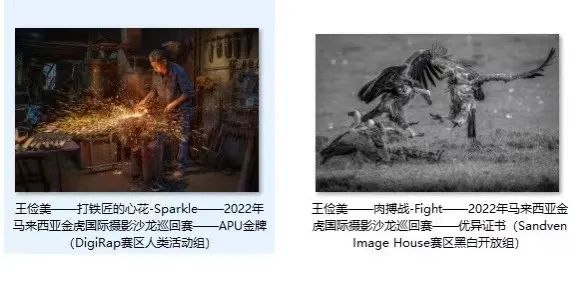 3)《 打铁匠的心花-Sparkle》荣获2022年马来西亚金虎国际摄影沙龙巡回赛 APU金牌,同年4月27日,选登《人民摄影报》;