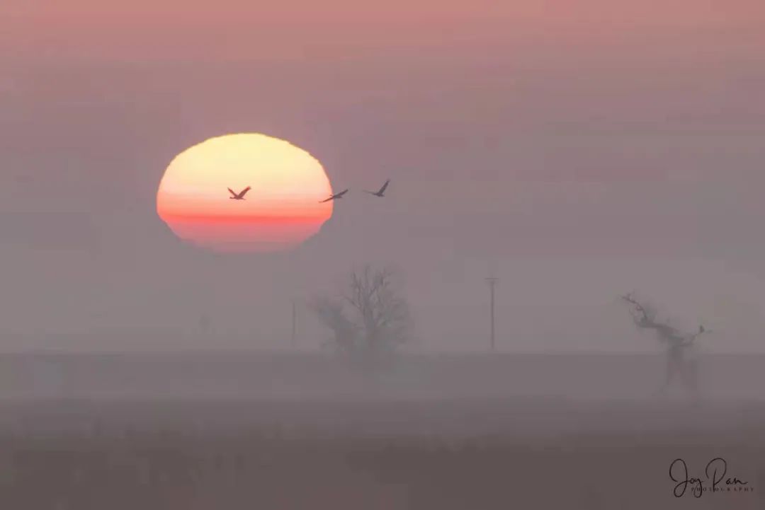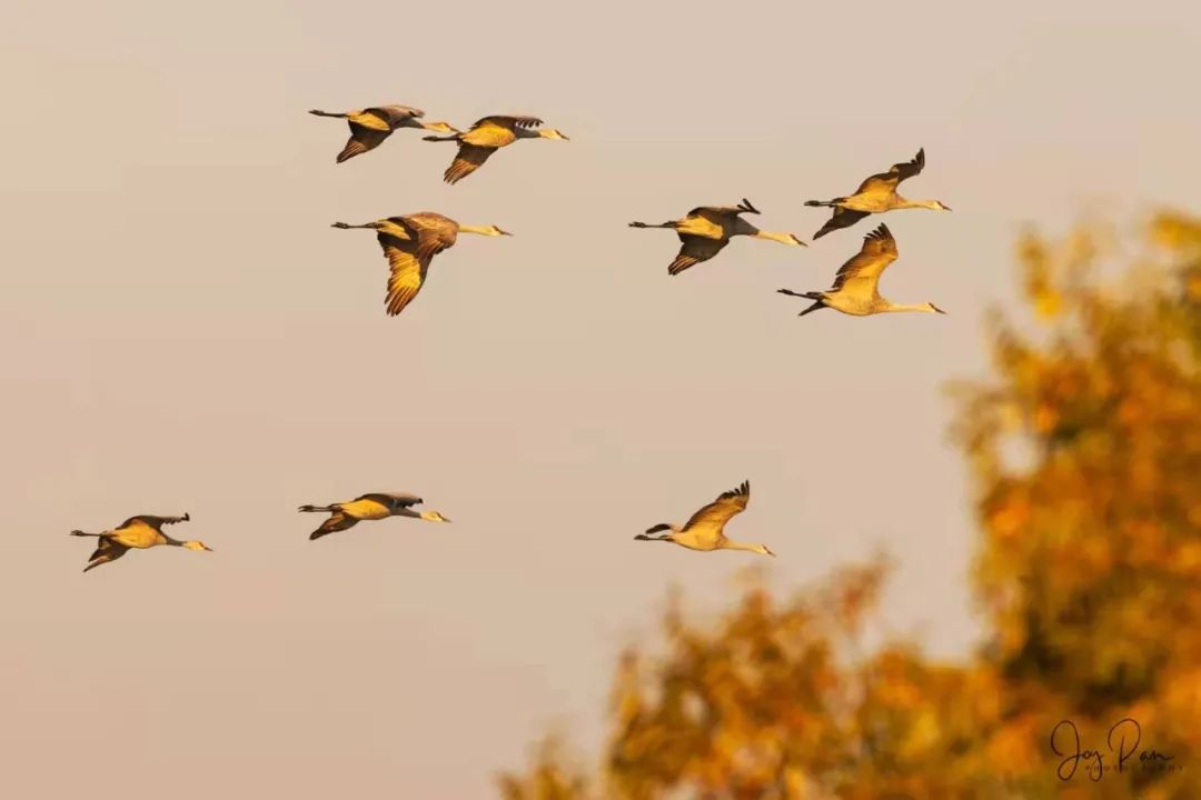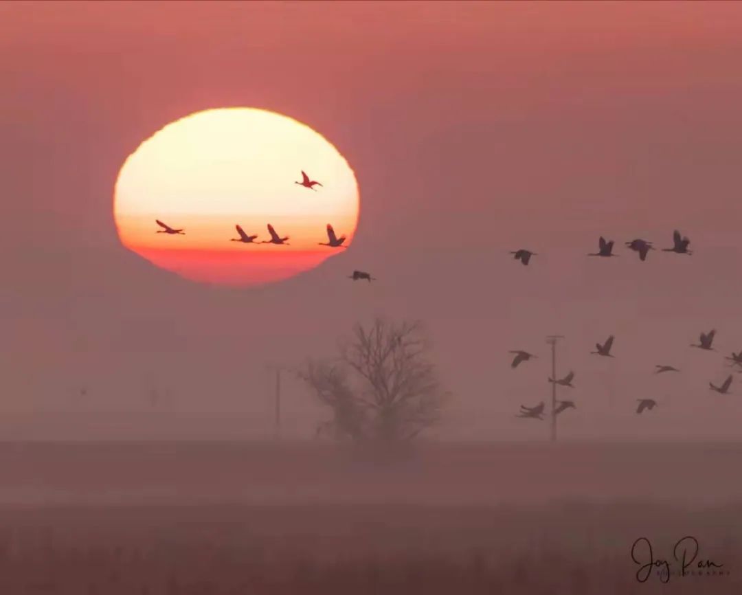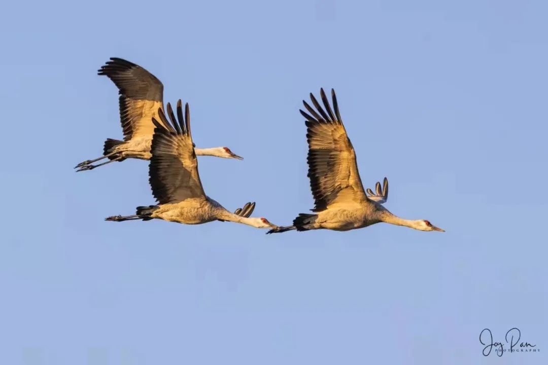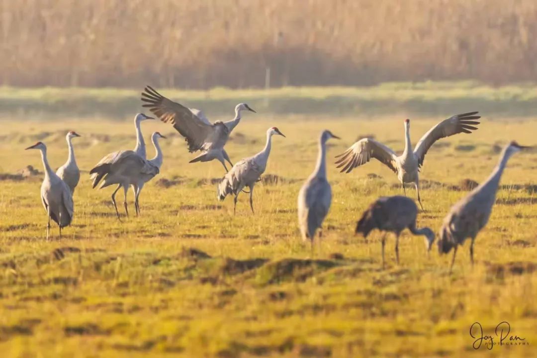 沙丘鹤也在日出日落时分成群结队,遨游湿地生态保护区的天空。加州中部,我一直以为只有一望无际的农田和果园,想不到还有这片低调的鸟类保护区。