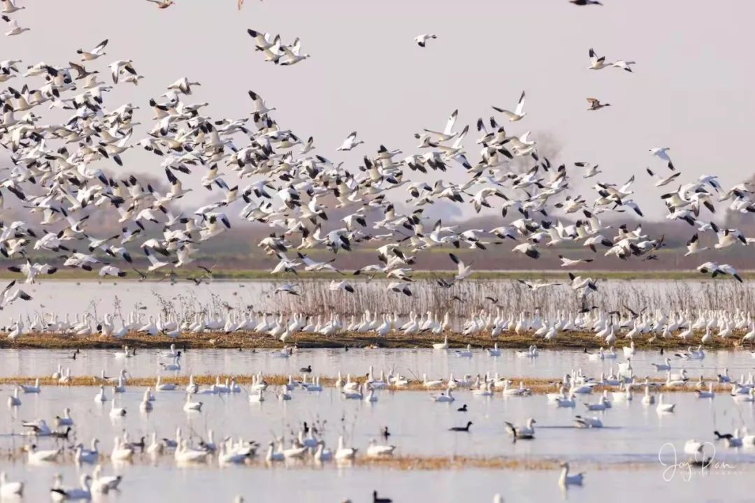 今年在摄友推荐下,只是开车4个小时,来到加州中部Merced,就见识了成千上万只雪雁起飞的壮观场景。它们在空中不断变化队形,俨然一场场大自然免费的Airshow,空中表演。