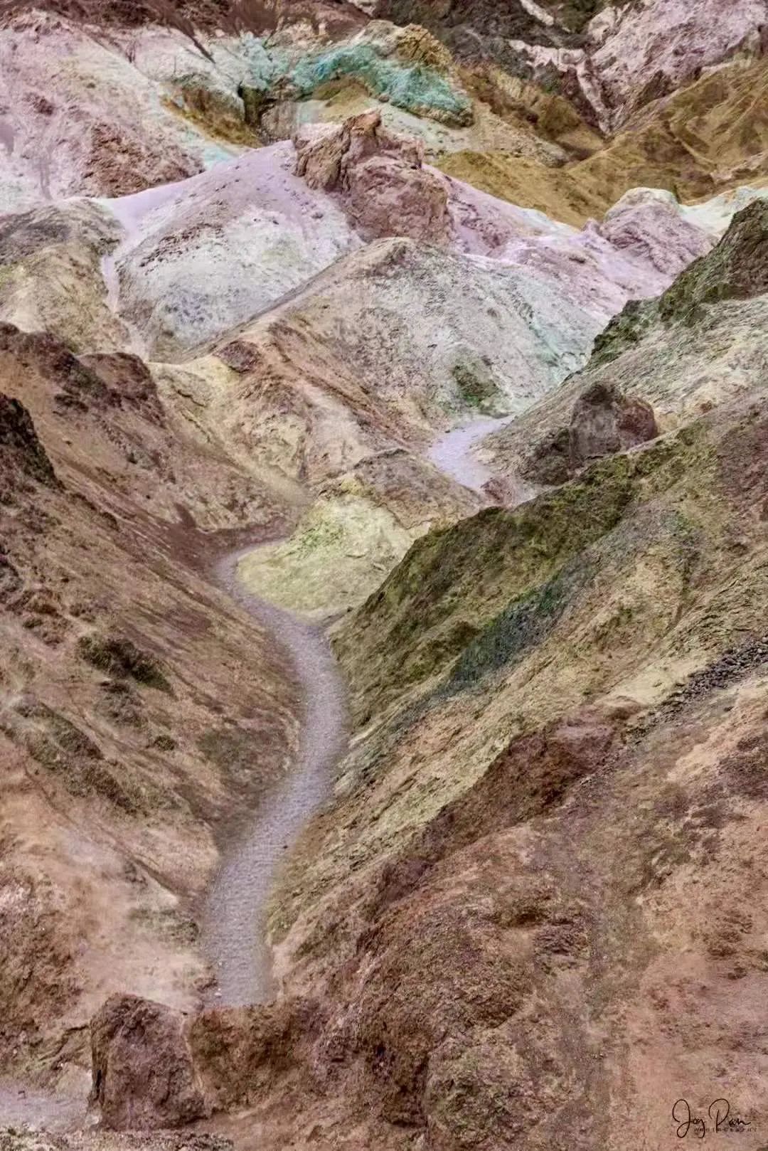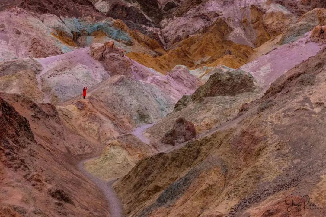 死亡谷被称为“艺术家的调色板',因为这里的岩石会在太阳的照耀下,闪耀着金色、粉红色和红色,荒地被涂上红色、紫色甚至绿色。
