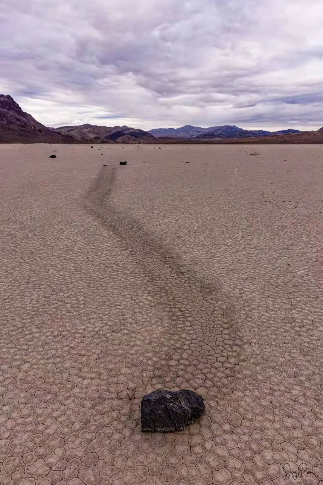 科学家说,是风和夜晚形成的薄冰助推了石块的移动。我们这些平常人,还是更喜欢神话的迷离,对于这些说法,也就姑妄听之、姑妄信之吧。