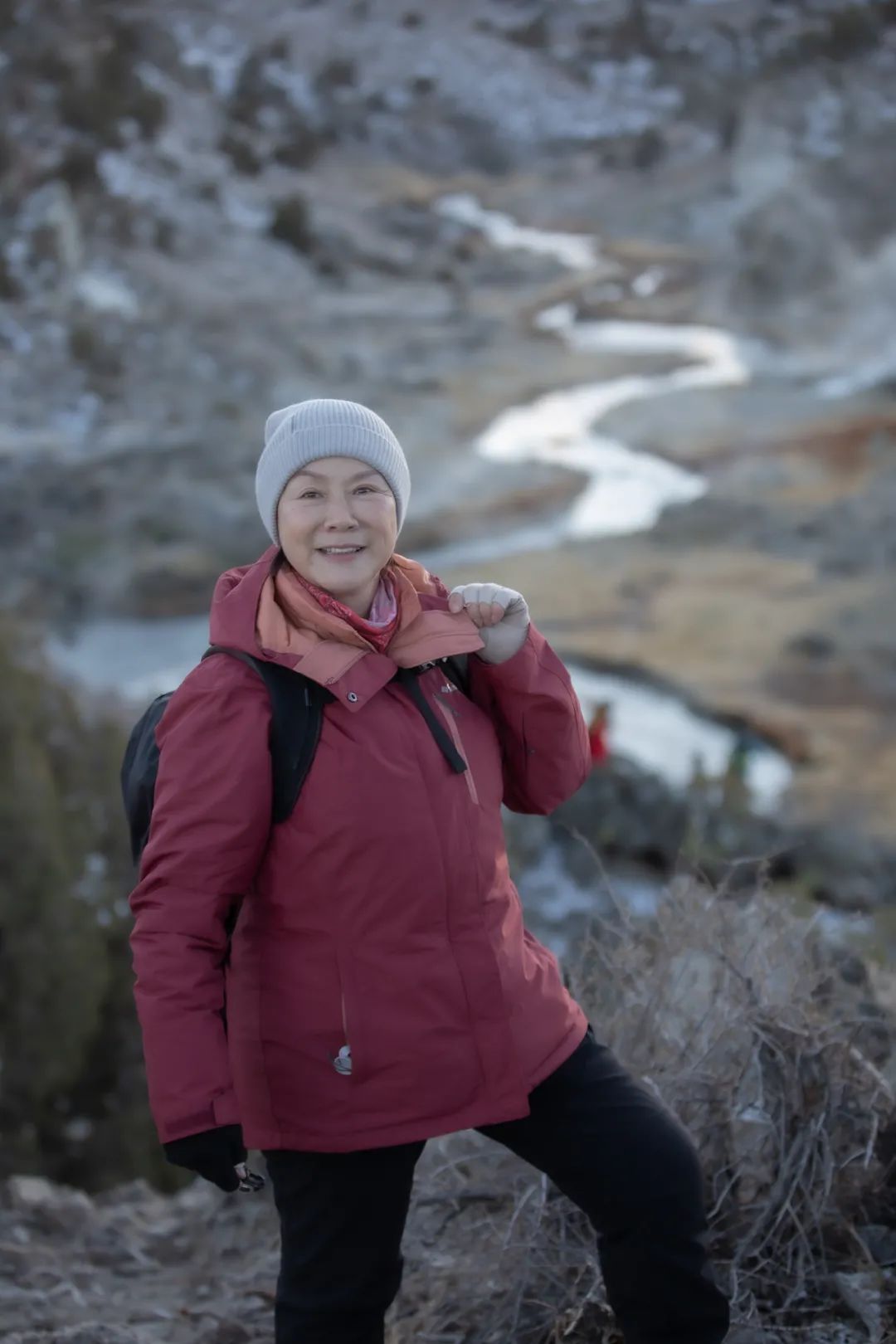 摄影人在严寒中站成一道亮丽的风景,成为浩瀚自然怀抱之中的一抹暖色。