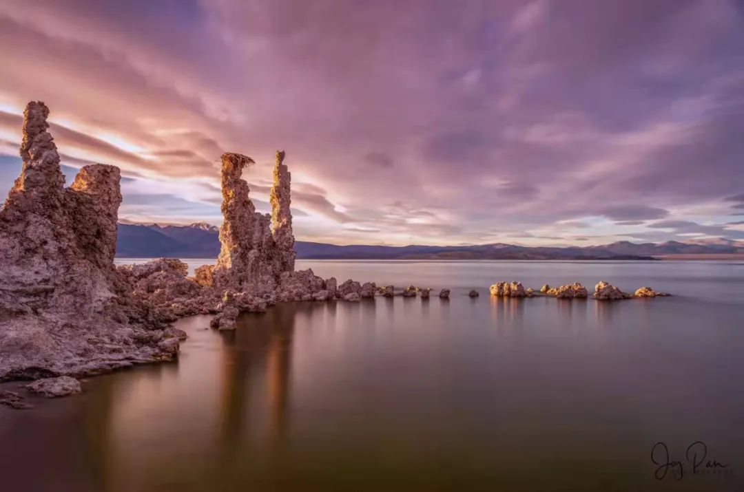 我们一行拍了一个下午,次日凌晨又去拍摄,直呼美妙。当时气温是零下14摄氏度。我们拍完这个点要赶往亚利桑那州的大峡谷,故把我们的车子寄存在此地,与波士顿来的闵大夫拼车。心想回来取车时再去Mono Lake掐几张,时间不够用,还没有拍过瘾。