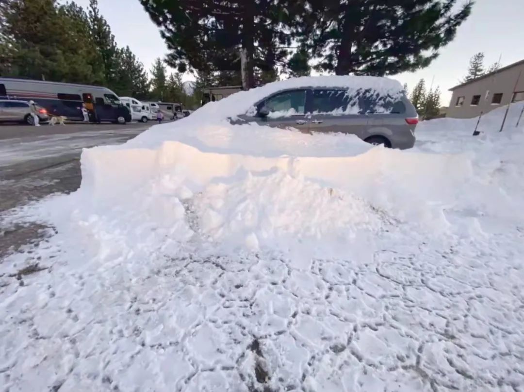 请了本家大哥开车5小时,我们仨花了1个多小时,隔壁的美国小伙也过来帮忙,用两把铁锹铲雪,才把车子拖出雪地。小心翼翼,如履薄冰,开出猛犸象湖地区。雪链或雪胎被法律法规要求的。此时顾不上再去拍照,只想着赶紧离开地面结冰区,回到洛杉矶享受温暖阳光。