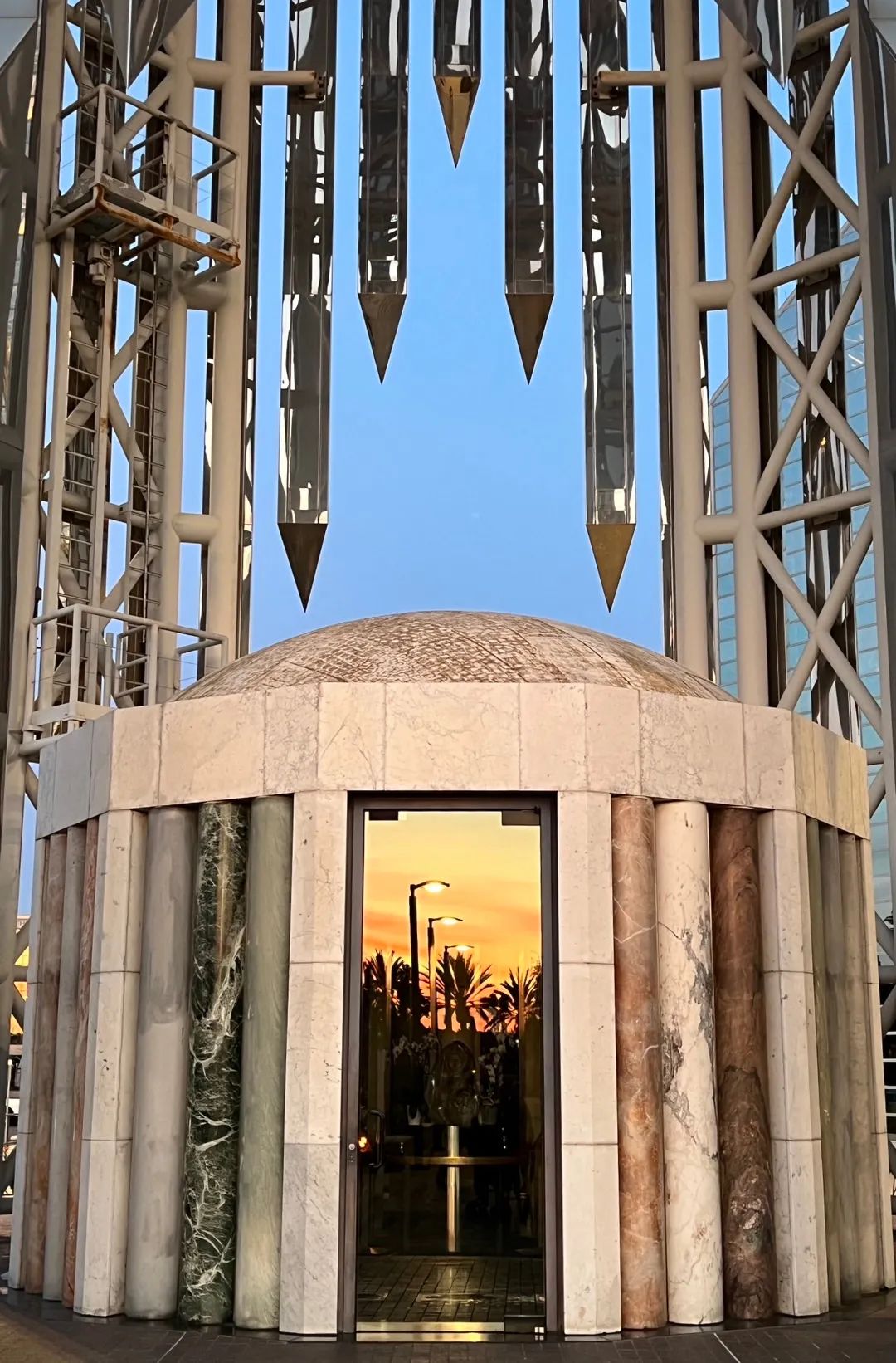 夕阳西下,直至蓝光时刻,此处,美景,紧接昨日帖。回来路上,拍到圆月与棕榈同框,典型表现“天使城”洛杉矶的特色。