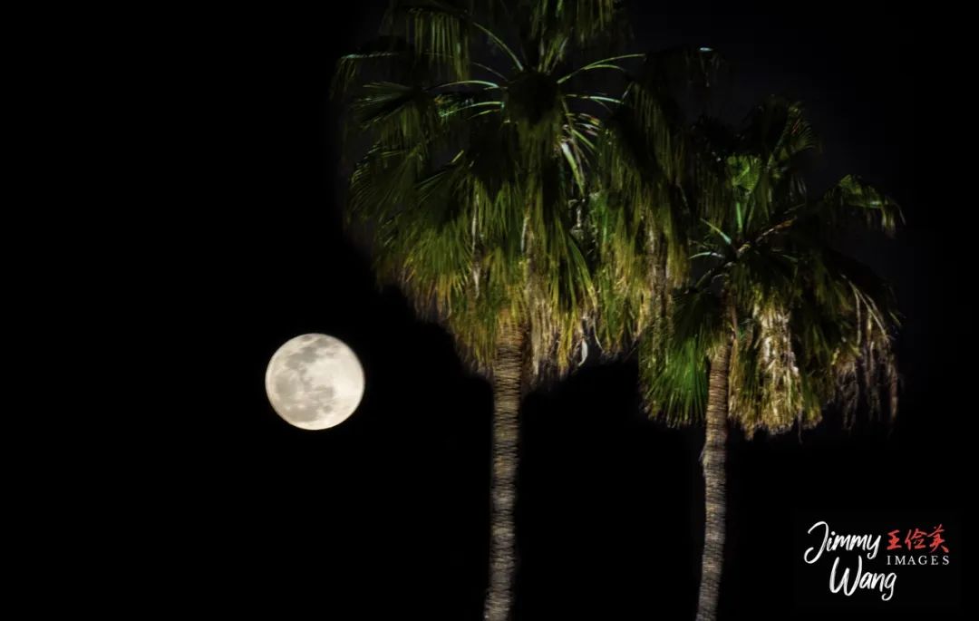 月色给棕榈树涂抹上朦胧的色调,神秘、静好,好像有天使刚好飞过。