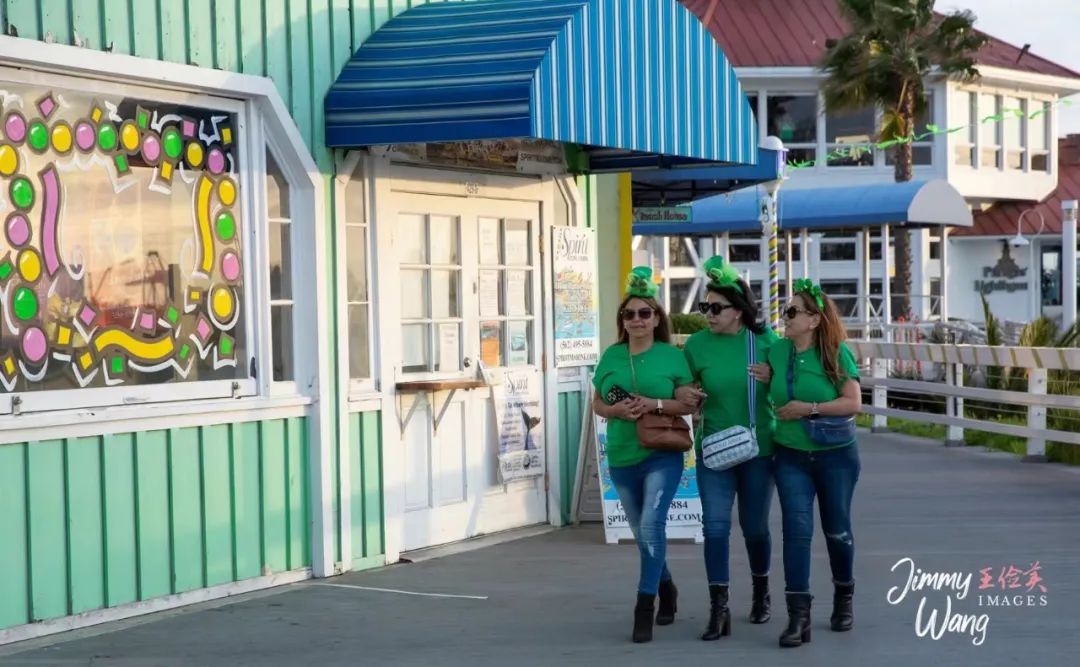 Linda: 我想给的标题是:“墙内墙外”, or “篱内篱外”,穷与富的对比,自由与束缚的对比,高层与底层阶级的对比,看似富足的人有时有很多不为人知的压力烦恼,患得患失。他们有太多忧虑或很多不得已的算计及不可为外人知的秘密。这并不代表他们不好,而是环境逼着他们必须隐藏自己的内心世界才能在政界商界生存。所以在照片中我们看不到这群人。而流浪者看似一无所有却可以天为被地为床,坦然轻松的认为没有什么可以失去的。所以我们可以一眼看到她的存在。如此截然不同的墙内墙外两群人却能在某个阳光明媚的日子和谐生活在同一片天空下,也表示美国某些制度的优越,比如社会救济金和追求种族年龄穷富平等,不以貌取人,有点积极的意义圣帕特里克节 (Saint Patrick's Day)掠影。三月十七日是圣帕特里克节,是为了纪念爱尔兰守护神圣帕特里克。因为圣帕特里克的象征颜色是绿色,无怪乎在长滩(Long Beach)游览时到处都能见到穿绿衣的人们,放眼望去,移情世界,那些挺平常的景物也似乎在呼应这个节日,绿桥、绿塔……定格在镜头中。