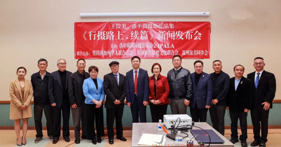 3月5日,在洛杉矶天普市,由洛杉矶国际摄影家协会主办,美国南加州华人联合总会、美国浙江经贸文化联合会、温州旅美同乡会联合主办,美国贝佳天然药业赞助的王俭美、潘平微摄影作品集《行摄路上 · 续篇》新闻发布会隆重举行。