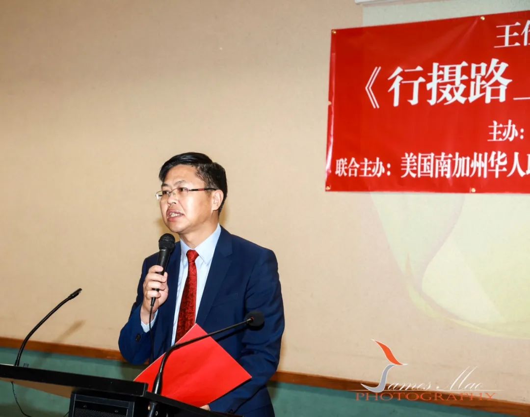 蓝色封面为2018年中国摄影出版社出版的《行摄路上》,紫色与粉色封面为香港中囯旅游出版社新近出版的《行摄路上·续篇》。出席者有中国驻洛杉矶总领馆李春林副总领事、侨务领事路君燮、美国国会议员赵美心,以及以上四个会会长赵国庆、邵闻、马壮、黄少敏,美华基金会华主席李社潮、摄影家协会荣誉会长毛幼荣、美华总理事长熊文胜等等各社团侨领、干部、摄影老师与摄友等。
