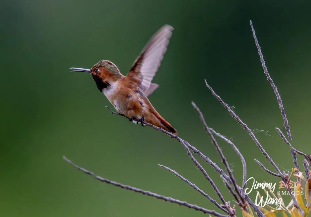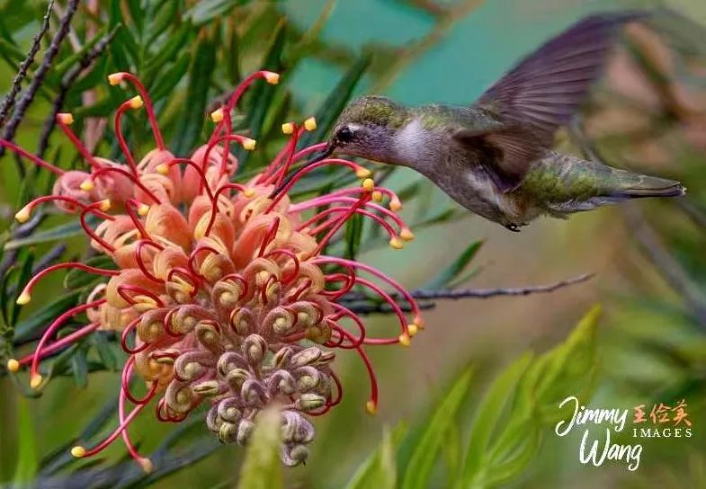 其他蜂鸟栖息枝头,以及汲取花蜜。
