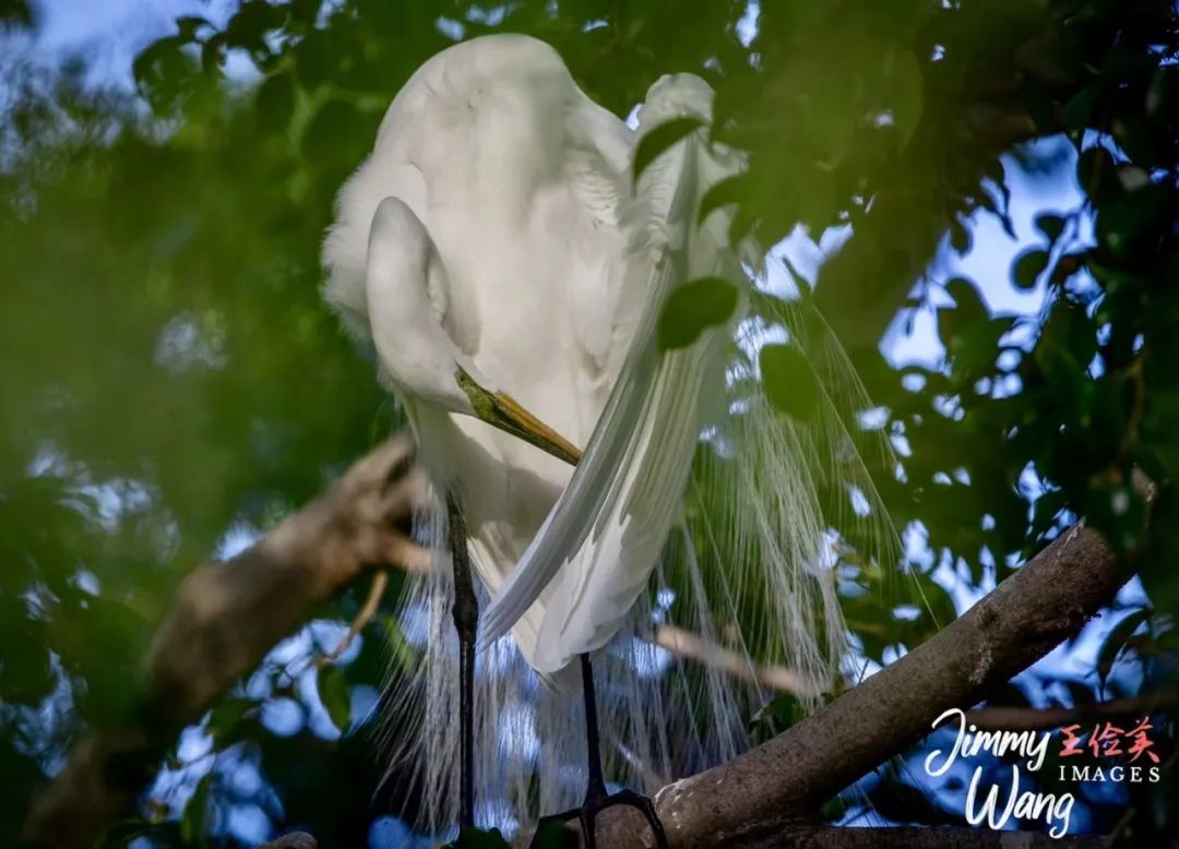 据悉,白鹭在繁殖季期间,头部会长出2枚辫羽,颈背长出细长饰羽,胸背处也长出一圈蓑状羽。这一切不过是——为了爱情。