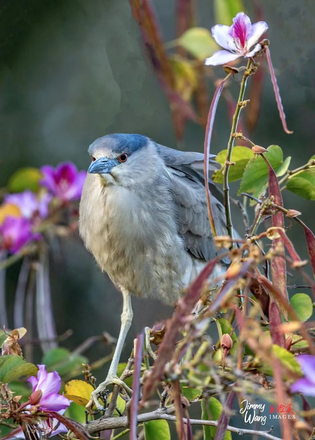 栖息于高大美艳的羊蹄甲花丛之中,花鸟颜值互相映衬。